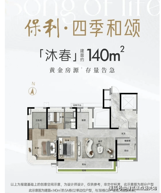 项目主力户型为108㎡、110㎡、120㎡三款三至四房及140㎡奢阔四房,全部实现全南向布局,采光通风优异。得益于新规优化,使用率达100%,空间利用率显著高于旧规产品。108-120㎡户型强调功能紧凑与动线流畅,LDK一体化设计放大公区尺度;140㎡四房则配备双卫、独立玄关、大面宽阳台,主卧套房配置齐全,满足多代同住或高阶改善需求。所有户型层高3.15米,配合全景落地窗,营造开阔视野与轻盈居住体验。作为准现房,购房者可实地考察工程进度与用材标准,规避期房不确定性,尤其适合追求“所见即所得”的务实型买家。