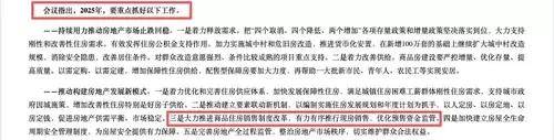 “现房销售”是本次住建部会议最受关注的一点。事实上,2024年的全国住房城乡建设工作会议也曾提过“大力推进商品住房销售制度改革,有力有序推行现房销售”。