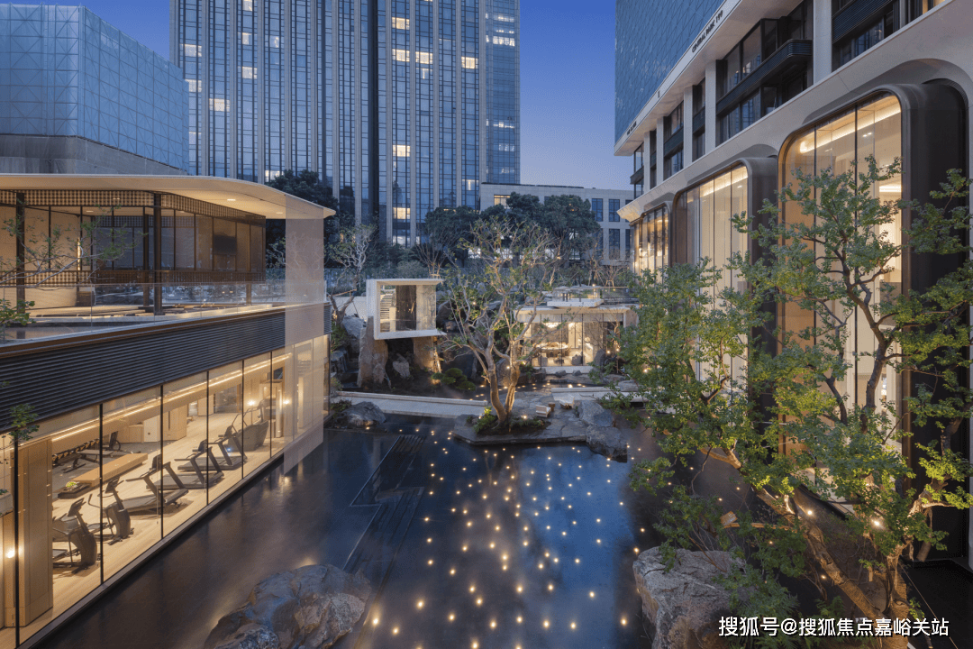 在这里,长约23米的恒温泳池一眼望尽,没有一根立柱遮挡视线,玻璃幕墙与下沉庭院相映成趣,生活的质感油然而生;
