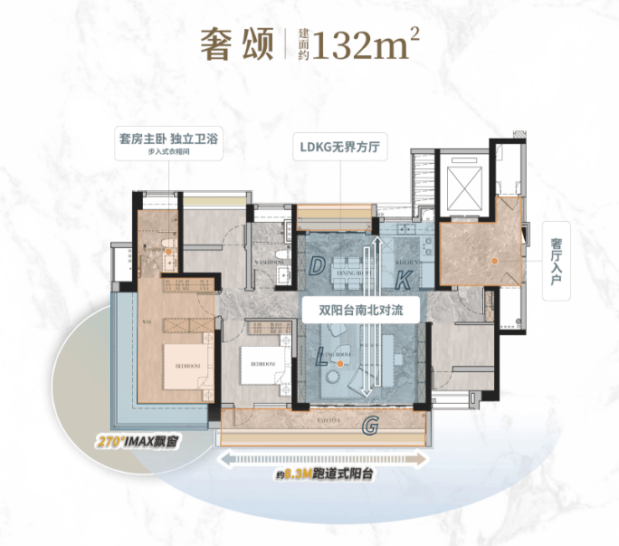 对于追求极致居住品质的三代同堂家庭或多人口家庭来说,建面132㎡的四房两厅两卫户型则是不可多得的奢华享受。这个户型不仅在面积上更加宽裕,更在空间布局、景观视野和功能细节上做到了极致。