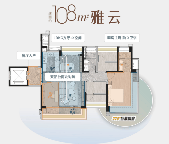 对于二胎家庭或有改善需求的购房者来说,建面108㎡的三房两厅两卫户型则提供了更高品质的居住体验。这个户型在空间布局和功能分区上更加考究,真正实现了“南北通透”的居住理想。