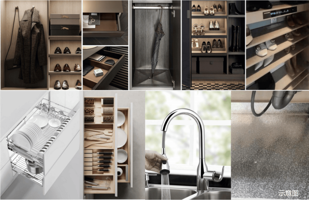 入户玄关柜与卫生间抽屉,采用 “编织纹理” 皮革包裹,金茂精益求精,只为给业主带来高定生活的仪式感