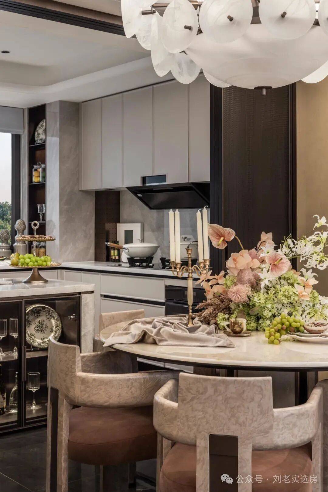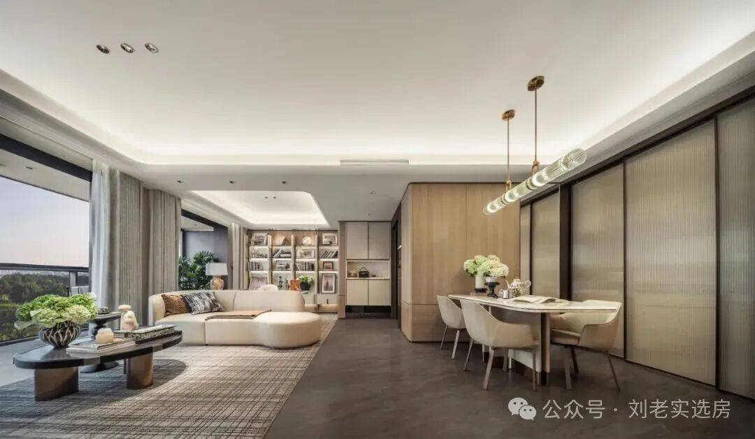 与常规新房室内没有门与墙的生硬拼凑感不同,江湾金茂府通过大量木饰面、隐藏门等细节,形成统一的设计语言,色彩与材质搭配协调统一,尽显整体美感!